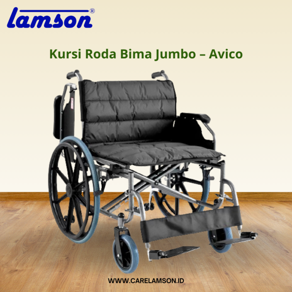Kursi Roda Bima (Jumbo) merupakan kursi roda standar jumbo yang mampu menahan berat beban sampai dengan 120 kg dengan ruang yang lebih besar jika dibandingkan dengan kursi roda standart lainnya Rangka terbuat dari besi pilihan yang dilapisi dengan powder coating (Anti Karat). Dengan pijakan kaki yang bisa dilepaskan, sandaran tangan yang bisa diangkat sehingga pengguna bisa turun dari depan atupun samping.